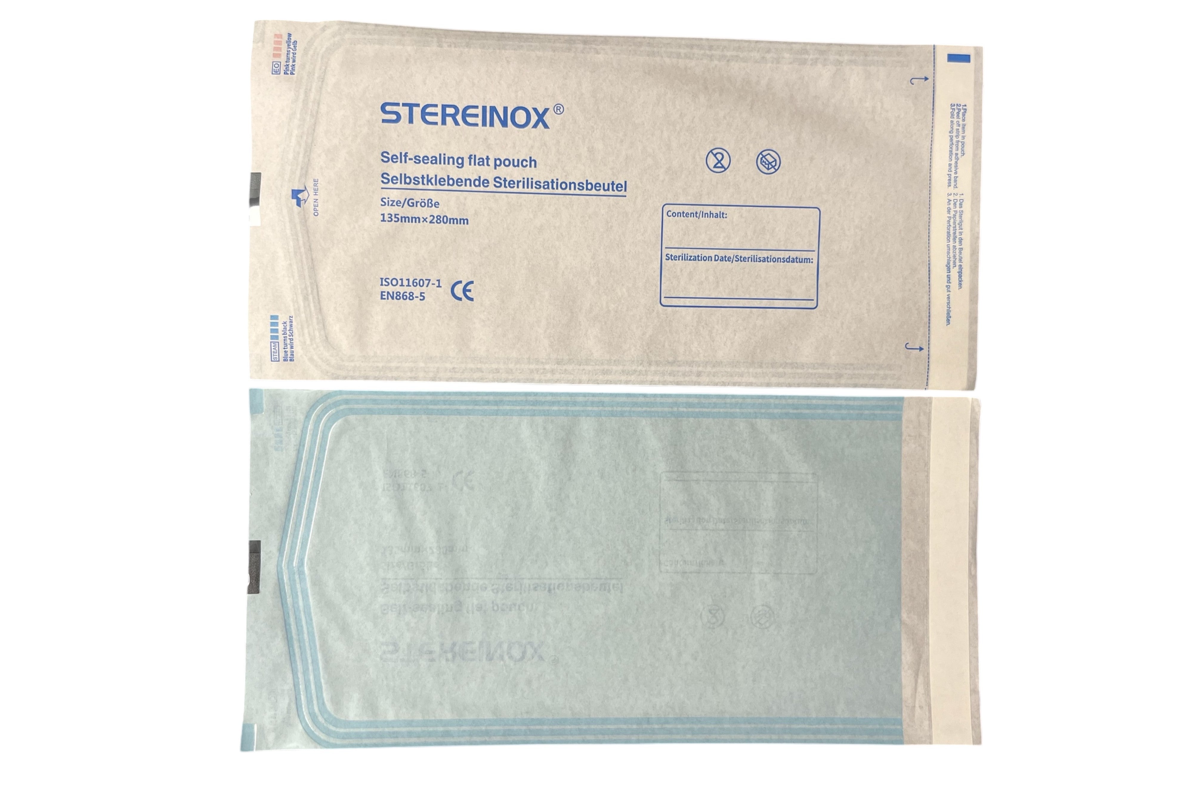 Autoclave bags with triple self-adhesive closure.