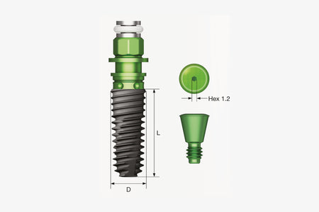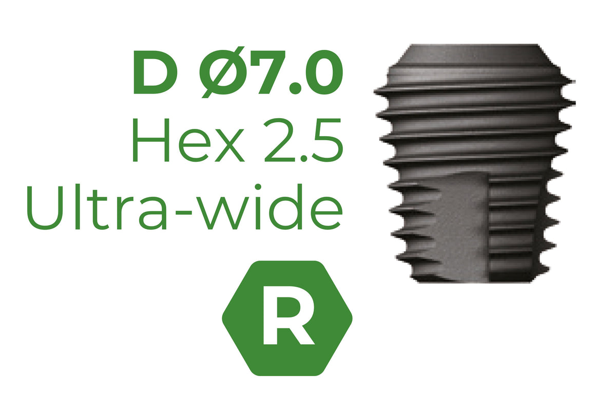 Useful for placement in a fresh extraction socket in the posterior region, for immediate placement, or to replace a failed implant