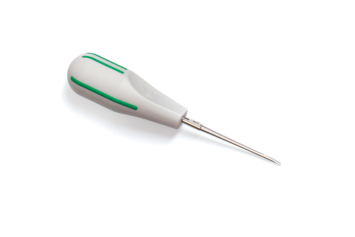 Ergonomic grip and well-designed periodontal ligament "knife" for effective cutting and loosening of tooth for gentle extraction. Choose from 8 different models.
