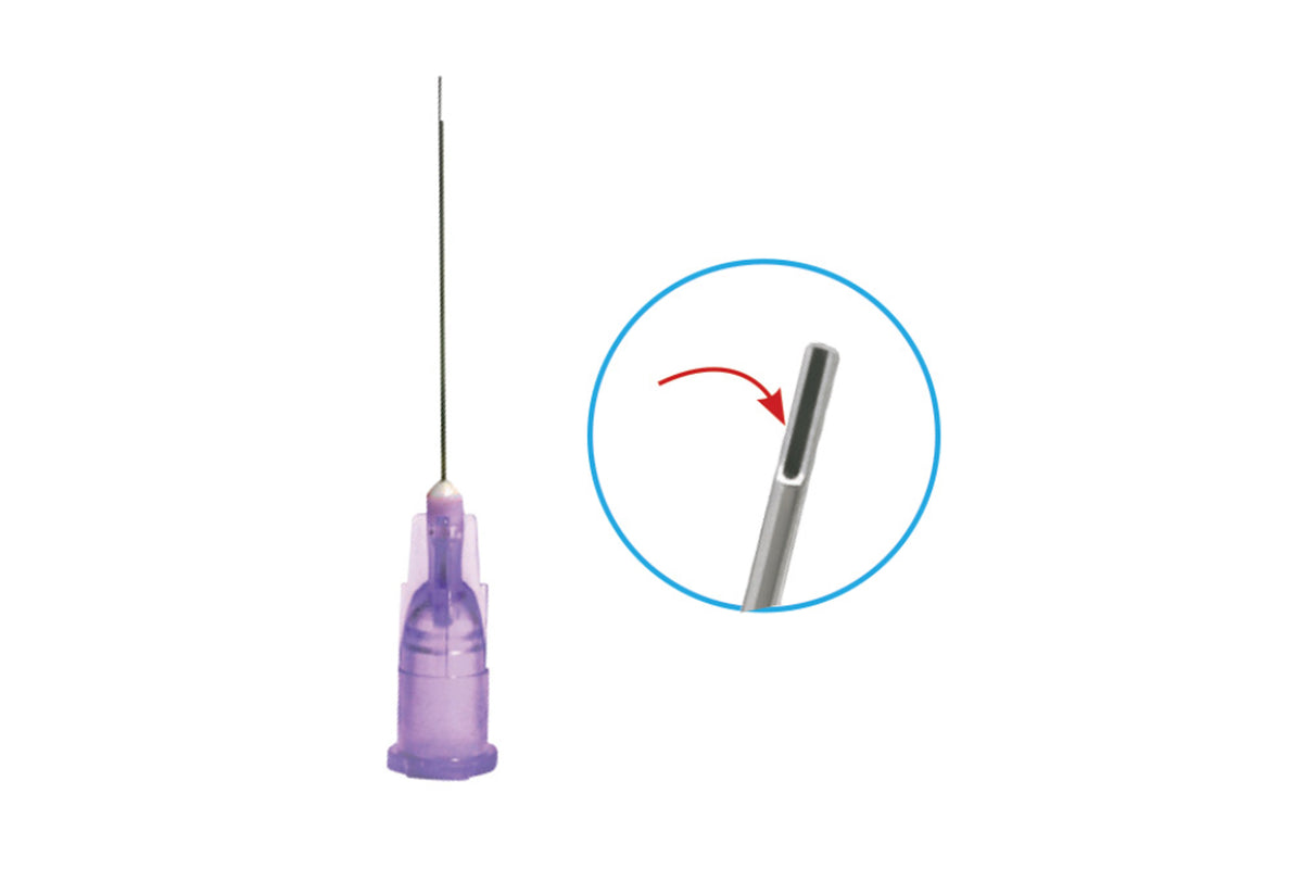 Endo irrigation cannula half-cut.Ø 0.25 mm