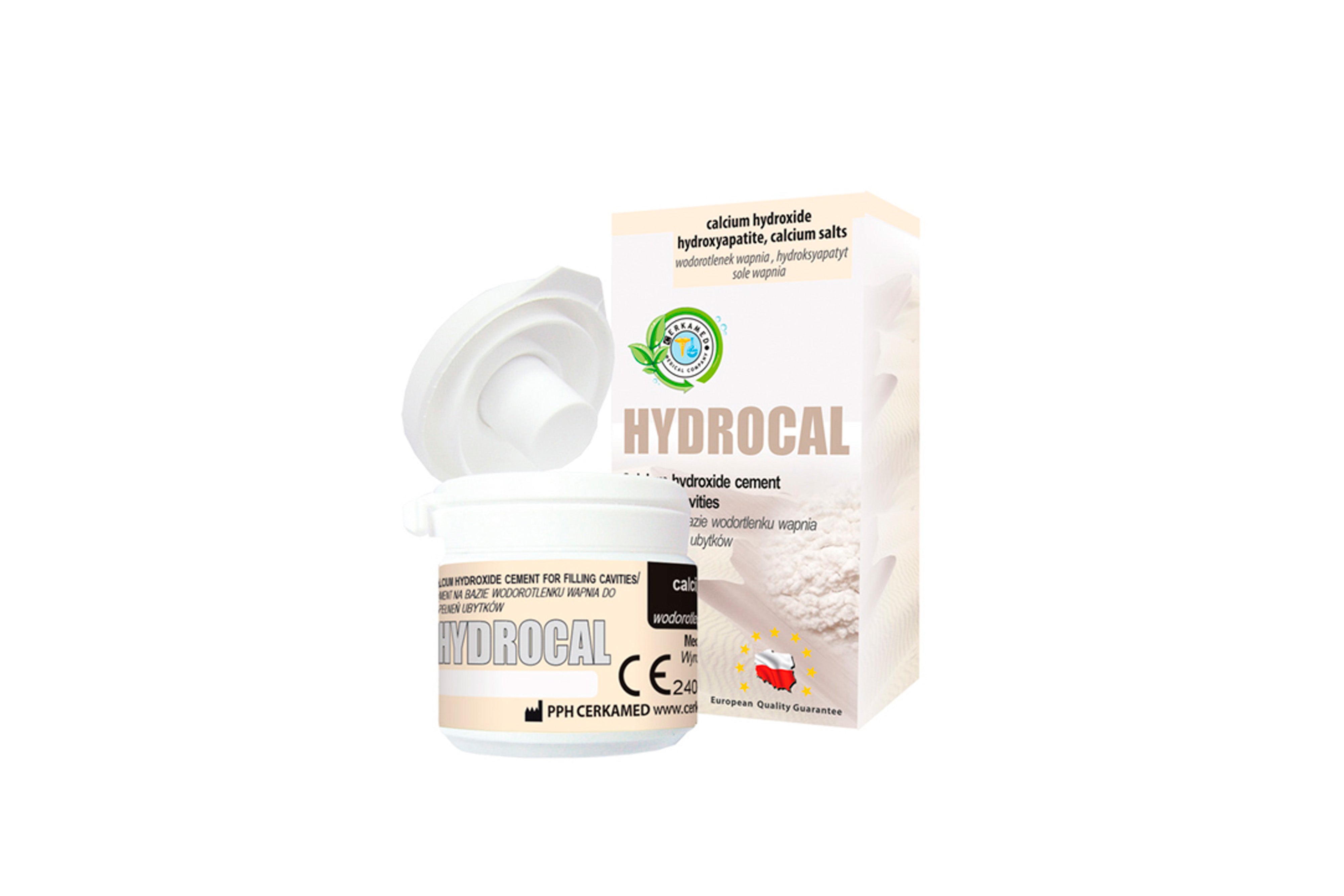 The Hydrocal preparation is intended for temporary filling material of cavities and root canals, as well as for indirect and direct pulp capping. The preparation remineralises the hard dental tissues and constitutes temporary protection of the cavity or root canal before final tooth filling.