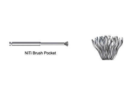 Used in an angle piece with 300 - 800 rpm, and ample water cooling. Must be sterilized before use (autoclave 134 degrees) Material: ASTM F2063 Nickel Titanium Alloy. Each brush contains 40 wires of 0.09 mm. Should not be reused. Made in South Korea