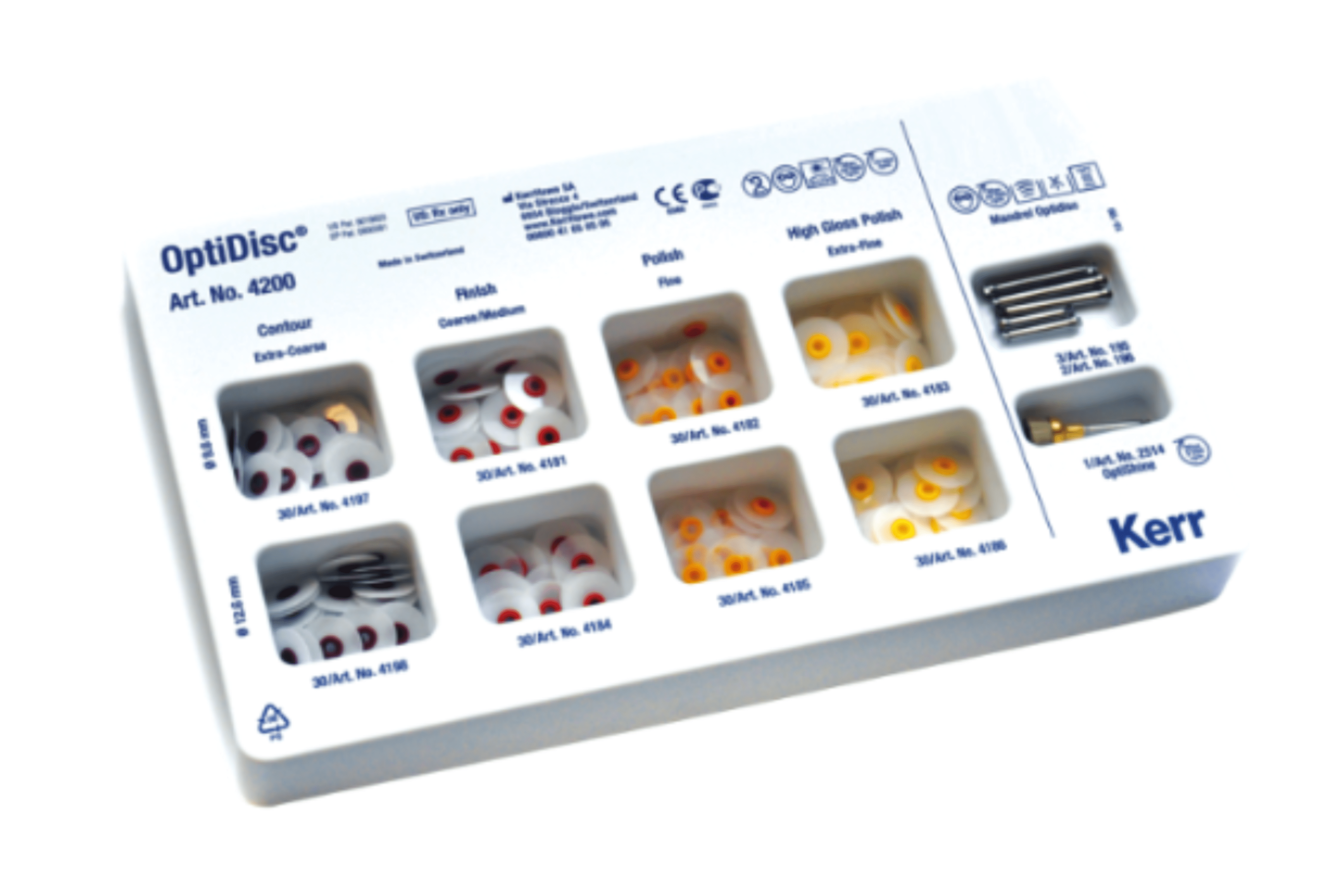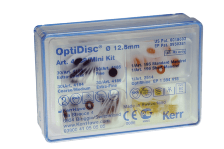 OptiDisc (like Soflex) is a top quality polishing and finishing system from Hawe Kerr. Can be used for composite, glass ionomers, amalgam and metal alloys.