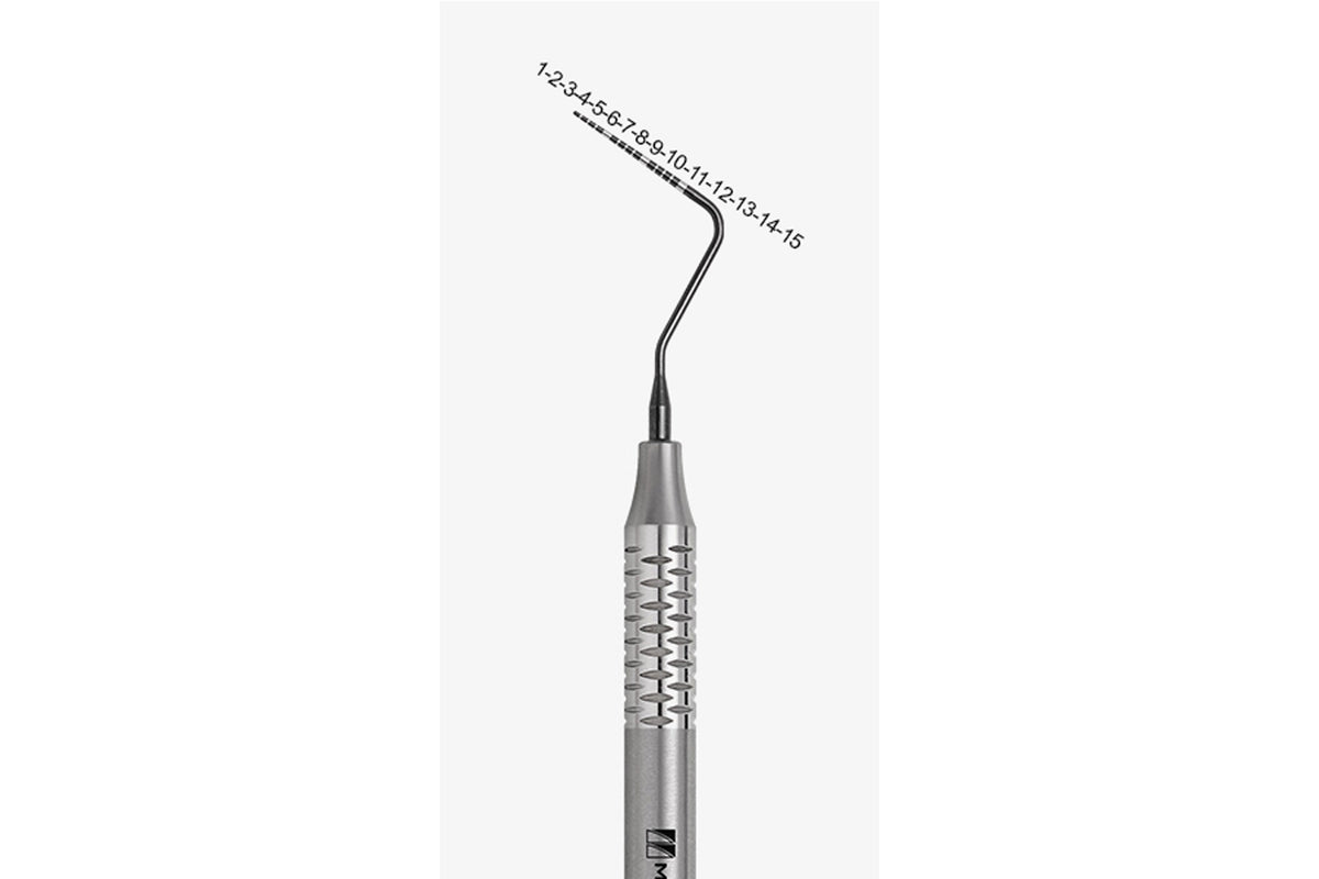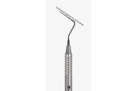 Pocket depth gauge with laser cut.